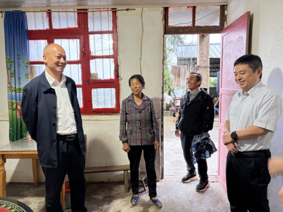 劉剛一行首先實地察看了駐村工作隊的辦公場所和生活場所,詳細詢問了隊員們的日常工作推進情況、生活保障需求,現(xiàn)場為大家送上了牛奶、水果等生活物資,切實把關懷送到一線。隨后,一行人還深入脫貧戶家中走訪慰問,為他們送去大米、食用油等生活必需品,與脫貧戶親切交談,詳細了解他們的工作和生活狀況以及實際需求與困難。