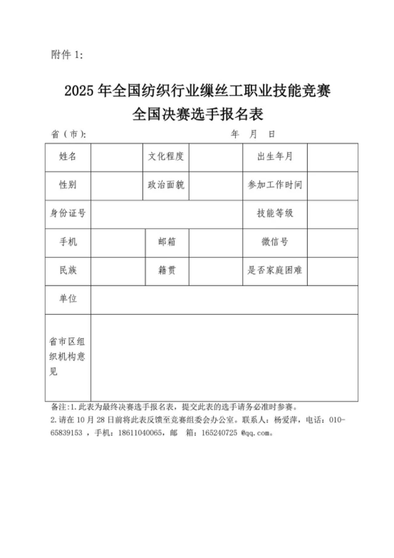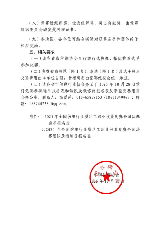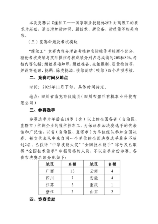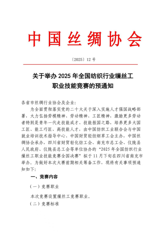 關(guān)于舉辦2025年全國紡織行業(yè)繅絲工職業(yè)技能競賽的預(yù)通知