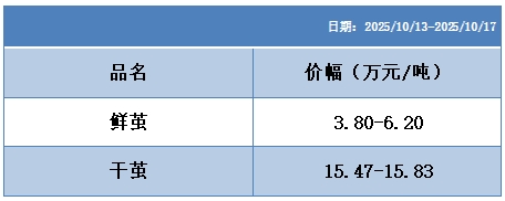 鮮繭價格指數(shù)上,廣西等主產(chǎn)區(qū)第三至第五批秋繭收購持續(xù)推進(jìn),工廠平均收購價環(huán)比上周繼續(xù)有所走高,帶動鮮繭價格指數(shù)收紅。短期鮮繭端的成本支撐效應(yīng)有所強化。
