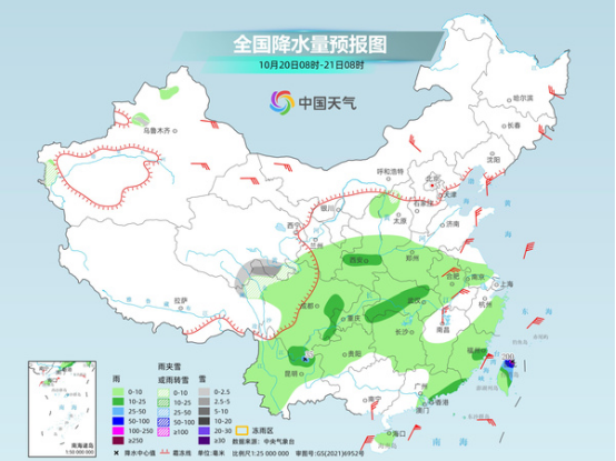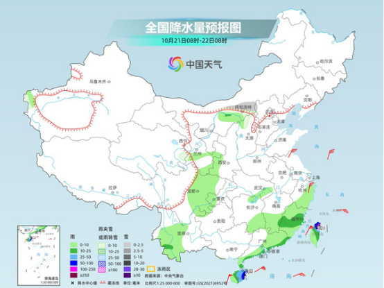 今明天,華西秋雨區(qū)降雨仍頻繁,不少地方隨著氣溫下降,雨雪相態(tài)將發(fā)生轉(zhuǎn)換,公眾外出需小心慢行,注意交通安全。臺(tái)風(fēng)“風(fēng)神”進(jìn)入南海后將遭遇冷空氣,導(dǎo)致其路徑轉(zhuǎn)向偏南,登陸我國的可能性大大降低,且臺(tái)風(fēng)強(qiáng)度也會(huì)受到冷空氣破壞,但冷空氣和臺(tái)風(fēng)“風(fēng)神”結(jié)合會(huì)給我國東部及南部海域帶來長時(shí)間的大風(fēng)天氣,將持續(xù)到24日,相關(guān)海域作業(yè)平臺(tái)以及往來船舶要做好防御大風(fēng)的準(zhǔn)備。