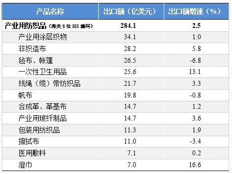 數(shù)據(jù)來源:中國海關(guān),中國產(chǎn)業(yè)用紡織品行業(yè)協(xié)會(huì)