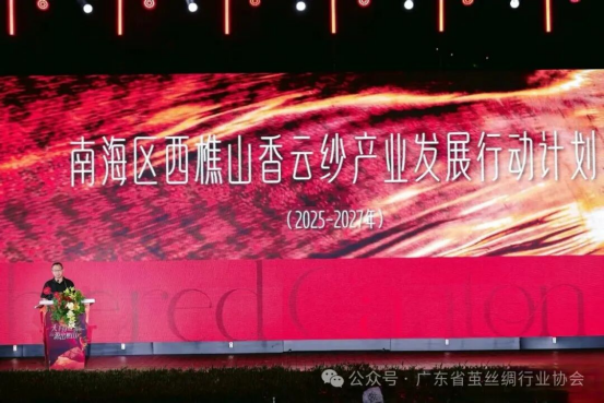 會上發(fā)布了《南海區(qū)西樵山香云紗產(chǎn)業(yè)發(fā)展行動計劃(2025-2027年)》,三年規(guī)劃立足南海千萬薯茛、千里河泥、千畝曬場獨特香云紗資源稟賦,構(gòu)建"3+3+3"產(chǎn)業(yè)發(fā)展工作體系,推動南海區(qū)力爭到2027年底,實現(xiàn)西樵山香云紗產(chǎn)業(yè)規(guī)模顯著提升,引育不少于25家品牌企業(yè),香云紗相關(guān)商品交易額不少于30億元,打造不少于5個產(chǎn)業(yè)特色園區(qū),形成具有行業(yè)影響力的香云紗產(chǎn)業(yè)集聚區(qū)。西樵山千畝野生薯莨保育基地啟用,全區(qū)統(tǒng)籌西樵、丹灶、九江3鎮(zhèn)資源,梳理出約2100畝曬莨地塊,到2027年可供曬莨土地面積達5000畝?!懊駱讽懺菩妗蔽穆庙椖繂樱韵阍萍單幕癁橹黝}打造沉浸式文旅綜合體的文化消費新場景,多個簽約板塊,打通覆蓋香云紗發(fā)展全產(chǎn)業(yè)鏈,同時還發(fā)布了《西樵山香云紗起源藍皮書》,香云紗主理人工作室入駐,非遺傳播大使授牌,最后樵山聽云、萬象有衣、匠曼延、汝良等品牌聯(lián)合的時尚大秀,以西樵山自然景觀為背景,將大會推向最高潮。