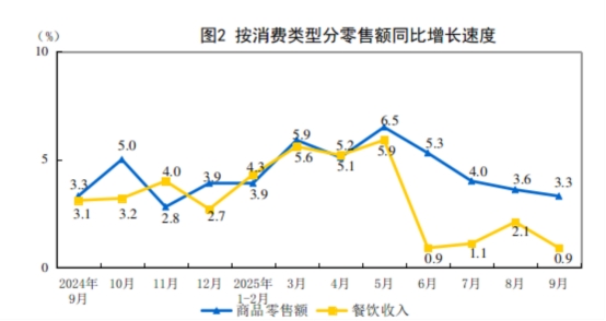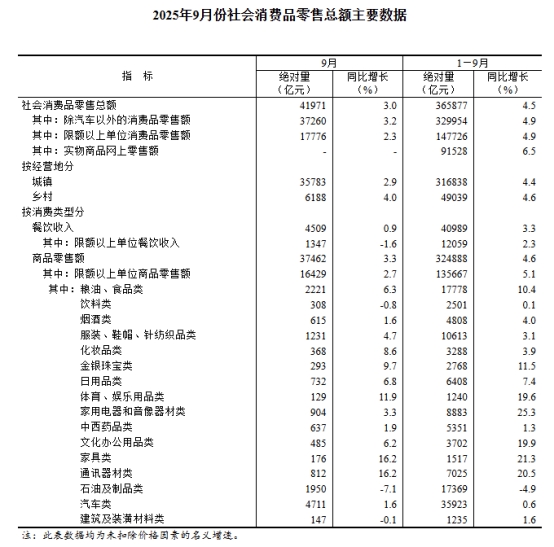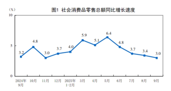 2025年9月份社會消費(fèi)品零售總額增長3.0%