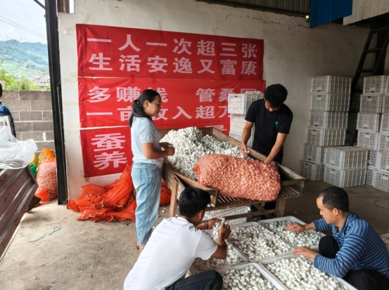 鄉(xiāng)政府不定期舉辦蠶桑產(chǎn)業(yè)發(fā)展培訓現(xiàn)場會,邀請農(nóng)技專家開展種養(yǎng)技術實操教學,創(chuàng)新開展以蠶桑產(chǎn)業(yè)發(fā)展為主題的情景黨課,并對年度高收入示范戶進行獎勵。以“技術賦能+榜樣獎勵”雙輪驅(qū)動,帶動農(nóng)戶擴大規(guī)模、引進新技術。在示范戶的榜樣作用和可觀經(jīng)濟收益的雙重驅(qū)動下,全鄉(xiāng)超100戶農(nóng)戶投身蠶桑產(chǎn)業(yè),覆蓋范圍從重點村向周邊延伸,該產(chǎn)業(yè)已成為群眾增收的重要支柱之一。