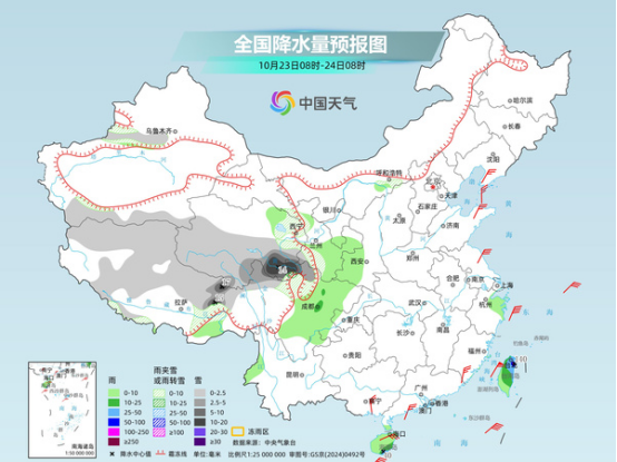 今天,中東部仍將維持降水稀少的格局,在臺風(fēng)和冷空氣共同影響下,海南、臺灣部分地區(qū)仍有明顯風(fēng)雨。中央氣象臺預(yù)計,新疆南疆盆地和西部山區(qū)、西藏西部和東部、青海東部和南部、甘肅西南部、河北北部等地部分地區(qū)有小到中雪或雨夾雪;海南島、臺灣島北部、廣東雷州半島等地部分地區(qū)有大到暴雨,其中,海南島東南部、臺灣島北部等地部分地區(qū)有大暴雨,局地特大暴雨。