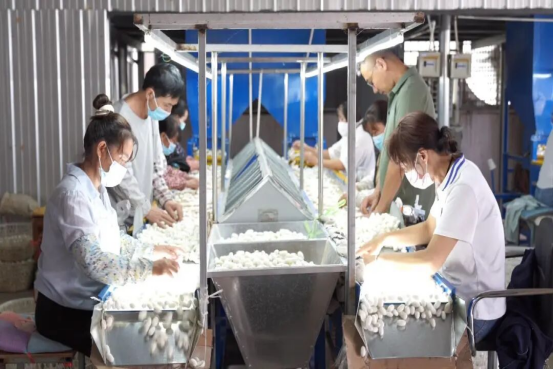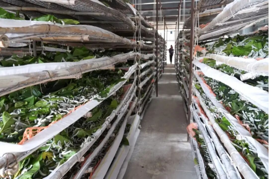 永仁縣通過推行“小蠶共育+大蠶分戶飼養(yǎng)”模式,定期組織技術(shù)培訓(xùn),推動(dòng)農(nóng)技人員下沉到村、指導(dǎo)到戶,確保蠶桑產(chǎn)業(yè)科學(xué)化、規(guī)范化發(fā)展。目前,像姜明這樣的專業(yè)養(yǎng)蠶戶,在永仁縣有1462戶,桑園面積發(fā)展到了2萬多畝,每年能生產(chǎn)蠶繭1400噸,產(chǎn)值8000萬元以上。除了培育養(yǎng)蠶專業(yè)戶,永仁縣還著力打造種桑養(yǎng)蠶專業(yè)村,村集體投入資金建設(shè)標(biāo)準(zhǔn)化桑園、大蠶房,再以出租的方式交由蠶農(nóng)管理,讓蠶桑產(chǎn)業(yè)成為壯大村級(jí)集體經(jīng)濟(jì)的有力引擎。