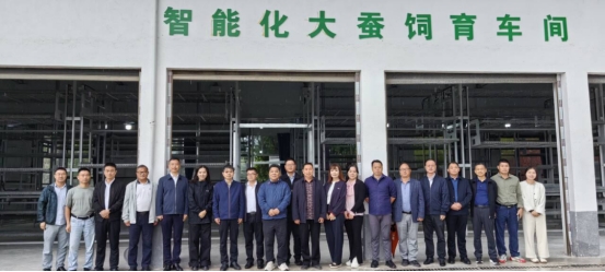 2025年10月21日代表團一行乘車前往四川省南充市嘉陵區(qū)龍蟠鎮(zhèn)四川順成現(xiàn)代農(nóng)業(yè)科技發(fā)展有限公司大蠶智能化養(yǎng)蠶車間,觀摩智能化養(yǎng)殖流程,詳細了解“龍頭企業(yè)+農(nóng)戶模式”運營管理情況,順成集團總經(jīng)理江邵剛陪同參觀,董事長趙燕輝、總經(jīng)理王尚雪參與交流。