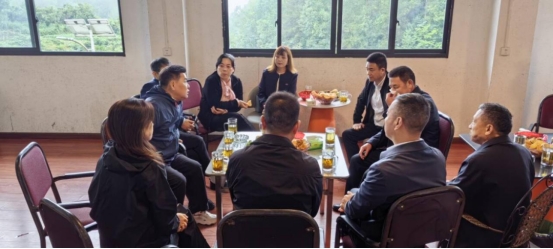 下午代表團一行乘車抵達重慶市蠶桑總站交流座談,蠶業(yè)總站站長李海波、副站長余華獻等參與交流座談。