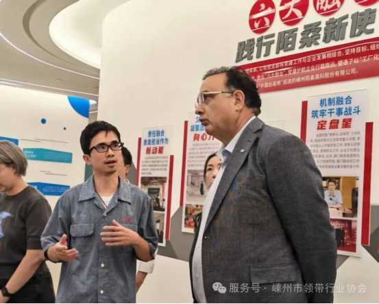 在實地調(diào)研過程中,夏澤翰教授一行詳細(xì)參觀了陌桑高科多齡段養(yǎng)蠶車間、智能化機械喂養(yǎng)系統(tǒng)等核心生產(chǎn)區(qū)域,公司負(fù)責(zé)人金豐介紹,陌桑工廠化養(yǎng)蠶項目突破了傳統(tǒng)養(yǎng)蠶的季節(jié)限制,通過人工飼料替代桑葉,機械化作業(yè)代替人工喂養(yǎng),實現(xiàn)全年365天不間斷養(yǎng)蠶產(chǎn)繭。在高科技賦能下,目前蠶絲蛋白應(yīng)用已覆蓋食品、農(nóng)業(yè)、醫(yī)療、美妝等多個新興領(lǐng)域,未來還將在高附加值領(lǐng)域繼續(xù)拓展,為現(xiàn)代繭業(yè)開辟更為廣闊的應(yīng)用空間。夏澤翰教授對陌桑高科以科技創(chuàng)新賦能傳統(tǒng)產(chǎn)業(yè)的做法給予了高度評價,認(rèn)為這種創(chuàng)新模式為全球絲綢產(chǎn)業(yè)的可持續(xù)發(fā)展提供了重要參考。在座談中,夏教授對嵊州領(lǐng)帶的國際地位也有了全新的認(rèn)識。