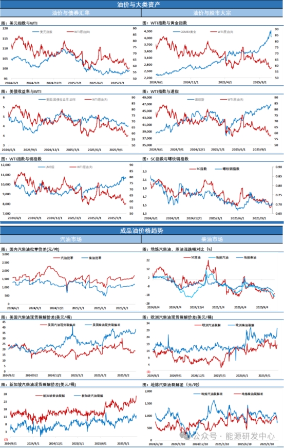【2】阿格斯報(bào)道美國對俄羅斯兩大石油生產(chǎn)商實(shí)施制裁,疊加庫存下降及煉廠檢修季,歐洲柴油裂解價(jià)差創(chuàng)3個(gè)月新高,短期或繼續(xù)走強(qiáng)。國際原油期貨大漲,中國成品油價(jià)格跟進(jìn)緩慢,煉油利潤收窄, 市場內(nèi)弱外強(qiáng),汽柴油出口套利1月以來首次轉(zhuǎn)正。10月24日,西北歐柴油裂解價(jià)差創(chuàng)下31美元/桶的三個(gè)月新高,周環(huán)比大漲7美元/桶。同日,布倫特柴油期貨合約11-12月價(jià)差高達(dá)16.50美元/噸,較22日高6美元/噸。10月24日,中國渤海灣汽柴油裂解價(jià)差分別為9.1美元/桶和19.8美元/桶,周環(huán)比跌6.5美元/桶和4.3美元/桶。貿(mào)易端因恐漲適度加大汽油船單采購;但對因?qū)ξ磥硇枨罂纯眨裼筒少I低迷。同日,中國-新加坡汽柴油出口利潤周環(huán)比分別上漲5.3美元/桶和9.1美元/桶至2.2美元/桶和5.7美元/桶。