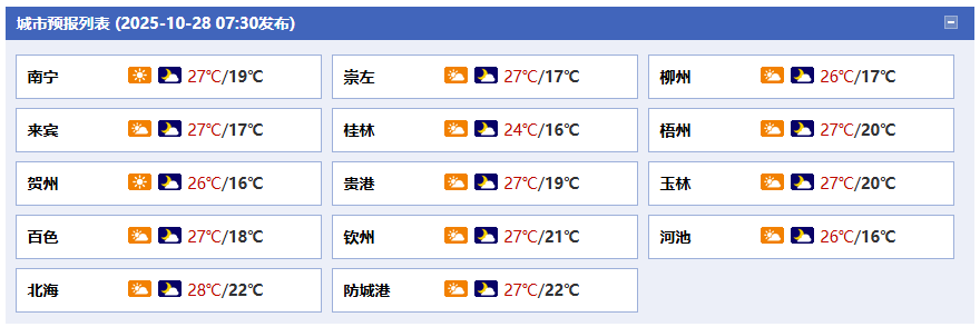 廣西氣象臺(tái)28日05時(shí)發(fā)布預(yù)報(bào):