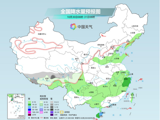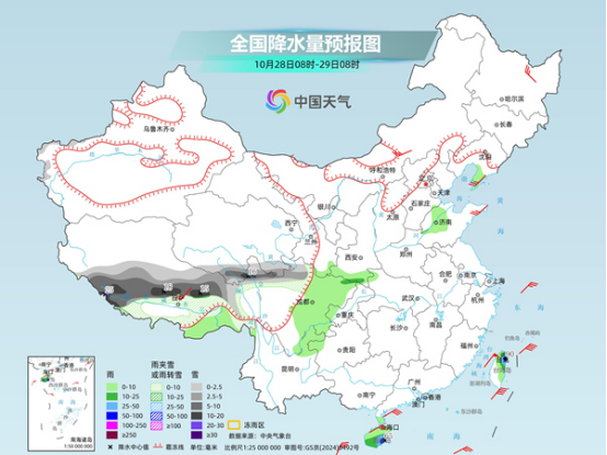 未來三天(10月28日至30日),青藏高原部分地區(qū)雨雪頻繁,局地有暴雪或大暴雪,需注意做好相關(guān)防御措施。此外,明天,我國中東部地區(qū)降水將增多,公眾雨雪天出行請留意交通安全。氣溫方面,今明天,我國大部氣溫回升,但晝夜溫差拉大,公眾請適時(shí)調(diào)整著裝,謹(jǐn)防感冒。
