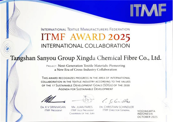 其中,中國(guó)大陸企業(yè)表現(xiàn)亮眼:連云港杜鐘新奧神氨綸有限公司憑借“高性能生物基氨綸的工業(yè)化生產(chǎn)”項(xiàng)目,以技術(shù)突破推動(dòng)氨綸產(chǎn)業(yè)向綠色低碳轉(zhuǎn)型,榮膺“2025國(guó)際紡聯(lián)可持續(xù)和創(chuàng)新獎(jiǎng)”;唐山三友集團(tuán)興達(dá)化纖有限公司則以“下一代紡織材料,締造跨界合作新紀(jì)元”的實(shí)踐成果,通過(guò)材料創(chuàng)新與全球協(xié)同構(gòu)建產(chǎn)業(yè)新生態(tài),摘得“2025國(guó)際紡聯(lián)國(guó)際合作獎(jiǎng)”,兩項(xiàng)榮譽(yù)充分彰顯了中國(guó)大陸紡織企業(yè)在全球可持續(xù)發(fā)展與國(guó)際合作中的標(biāo)桿實(shí)力。