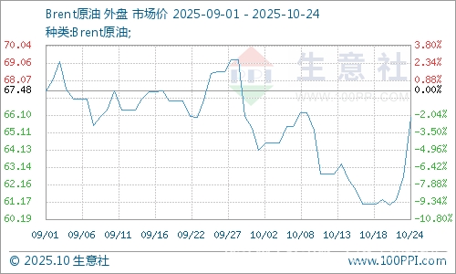 美國商業(yè)原油庫存下降,疊加市場對貿(mào)易爭端的憂慮緩和,國際油價上漲。10月23日,美國WTI原油期貨12月合約結(jié)算價報61.79美元/桶,布倫特原油期貨12月合約結(jié)算價報65.99美元/桶。