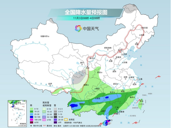 今明兩天(11月3日至4日),南方維持多雨格局,西南至江南、華南降雨連連,局地有大暴雨,多地還將出現(xiàn)明顯降溫。而在北方,大部地區(qū)雨雪不多,氣溫將快速回升。
