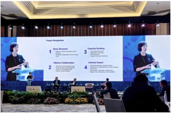 在“可持續(xù)、法規(guī)和關(guān)稅”議題環(huán)節(jié),中國紡聯(lián)副會(huì)長閻巖以“可持續(xù)引領(lǐng)發(fā)展——中國紡織政策框架和協(xié)同行動(dòng)”為題,進(jìn)行了發(fā)言。在未來展望中,她呼吁,應(yīng)聚焦于四個(gè)主要方面:基礎(chǔ)研究——探索控制和減少溫室氣體排放的方法,并在組織層面和產(chǎn)品層面制定相關(guān)標(biāo)準(zhǔn);聯(lián)盟合作——通過包括參與UNFCCC FICCA工作組、實(shí)施30·60凈零加速計(jì)劃、加入CNTAC-LCA工作組以及推進(jìn)時(shí)尚森林倡議,加強(qiáng)合作與行動(dòng);能力建設(shè)——致力于技術(shù)推廣、數(shù)據(jù)庫建設(shè)、可再生能源投資以及Scope3排放的減少;行業(yè)影響——通過舉辦氣候管理時(shí)尚峰會(huì)、參與洲際紡織ESG/碳中和會(huì)議、與下游客戶合作,以及提升供應(yīng)鏈的透明度和可追溯性,來推動(dòng)整個(gè)行業(yè)的進(jìn)步與發(fā)展。