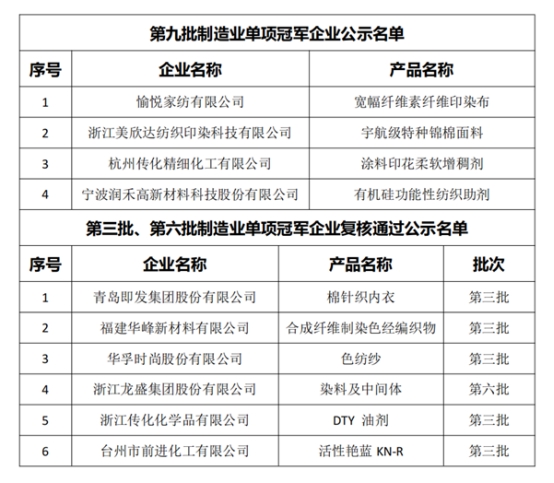 印染行業(yè)多家企業(yè)入選工信部制造業(yè)單項(xiàng)冠軍名單