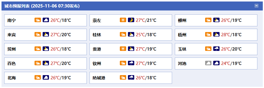 廣西氣象臺(tái)6日05時(shí)發(fā)布預(yù)報(bào):