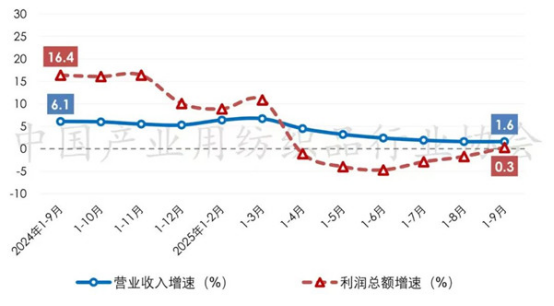 根據(jù)國家統(tǒng)計(jì)局?jǐn)?shù)據(jù),2025年前三季度產(chǎn)業(yè)用紡織品行業(yè)規(guī)模以上企業(yè)的營業(yè)收入和利潤總額分別同比增長1.6%和0.3%;根據(jù)中國產(chǎn)業(yè)用紡織品行業(yè)協(xié)會測算,行業(yè)規(guī)模以上企業(yè)的營業(yè)利潤率為3.7%,同比下降0.1個(gè)百分點(diǎn);行業(yè)虧損面為24.2%,較二季度收窄2.6個(gè)百分點(diǎn)。自2025年一季度以來,行業(yè)的營業(yè)收入增速逐月放緩,利潤總額增速再次進(jìn)入下降通道,行業(yè)經(jīng)濟(jì)平穩(wěn)運(yùn)行的基礎(chǔ)仍需鞏固。
