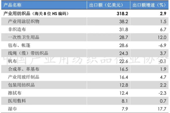 數(shù)據(jù)來源:中國產(chǎn)業(yè)用紡織品行業(yè)協(xié)會