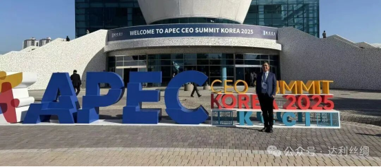 當(dāng)?shù)貢r(shí)間10月29日,2025年APEC工商領(lǐng)導(dǎo)人峰會(huì)在韓國慶州盛大開幕。達(dá)利絲綢公司董事長林平先生受邀參加此次峰會(huì),這不僅是林平先生的榮耀,也是達(dá)利絲綢的驕傲。