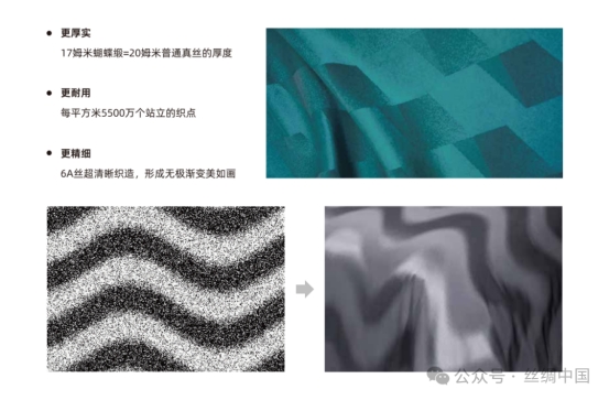 作為絲綢行業(yè)的標桿企業(yè),凱喜雅始終堅持以科技為引擎,以文化為靈魂,將“絲綢+文化+科技”作為創(chuàng)新理念,依托“蝴蝶緞”等創(chuàng)新織造技術,持續(xù)喚醒傳統(tǒng)行業(yè)的生機,推動古老絲綢產(chǎn)業(yè)向更精細、更多元的未來邁進。