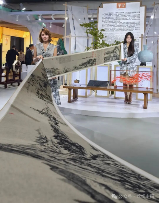 第八屆中國國際進口博覽會(簡稱“進博會”)于2025年11月5日在國家會展中心(上海)盛大啟幕。凱喜雅本次隨浙江省商務廳交易團亮相進博會,以“數(shù)字織造如何改變絲綢”為主題,在展館現(xiàn)場首秀旗下專利技術“蝴蝶緞”的新應用——《富春山居圖》AI完整版。