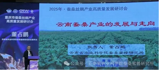 11月7日上午,考察組應邀參加在重慶舉辦的蠶桑絲綢產(chǎn)業(yè)高質(zhì)量發(fā)展研討會。會上,董占鵬就云南省委、省政府、省政協(xié)對蠶桑繭絲綢產(chǎn)業(yè)的最新政策導向及產(chǎn)業(yè)發(fā)展新機遇作了交流發(fā)言。中國絲綢協(xié)會及國家蠶桑產(chǎn)業(yè)技術體系專家分別作了主旨報告。來自廣西、四川、云南及重慶市各鄉(xiāng)鎮(zhèn)的蠶桑產(chǎn)業(yè)負責人分別匯報了各地產(chǎn)業(yè)發(fā)展情況,并圍繞當前問題與未來規(guī)劃進行了深入交流。