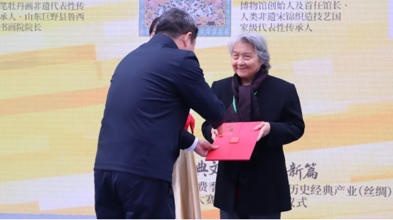 研究員級(jí)高工、蘇州絲綢博物館創(chuàng)始人及首任館長(zhǎng)、人類非遺宋錦織造技藝國(guó)家級(jí)代表性傳承人錢小萍大師受聘為為“中國(guó)絲綢非遺技藝傳承與產(chǎn)業(yè)轉(zhuǎn)化研究中心”高級(jí)顧問(wèn)。