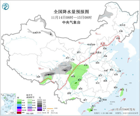 中央氣象臺(tái)預(yù)計(jì),今天,內(nèi)蒙古東北部、新疆北疆北部和東部、西藏東部、青海東南部、甘肅西南部、川西高原北部等地部分地區(qū)有小到中雪或雨夾雪,其中,西藏東北部、川西高原北部等地局地有大到暴雪。西藏東南部、西北地區(qū)東南部、西南地區(qū)東部、海南島等地部分地區(qū)有小到中雨,其中,海南島東南部等地部分地區(qū)有大雨。