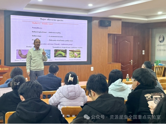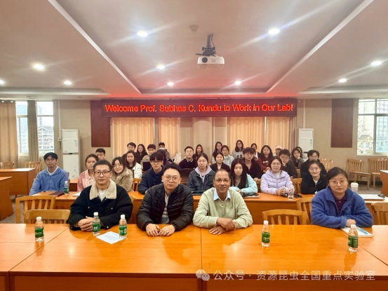 應(yīng)資源昆蟲全國重點實驗室邀請,印度國家科學院院士、葡萄牙米尼奧大學I3Bs(生物材料、生物可降解性與仿生學研究所)終身教授 Subhas C. Kundu 于2025年10月10日至11月15日到資源昆蟲全國重點實驗室開展為期一個多月的合作交流。實驗室主任代方銀教授熱情接待Kundu教授,作出有關(guān)工作安排。實驗室李田副主任、童曉玲教授、龍定沛研究員、陳潔副教授等通過座談,向Kundu院士介紹了有關(guān)進展情況,龍定沛研究員對接全面工作。