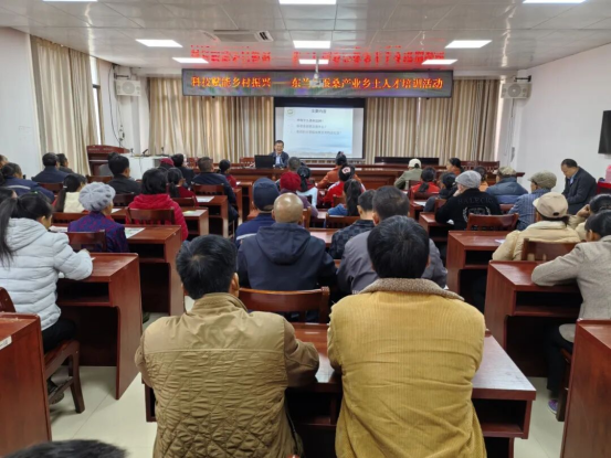 在金谷鄉(xiāng),服務團深入桑園、蠶房,以“理論學習+田間課堂”模式開展面對面、手把手的精準培訓。廣西蠶業(yè)技術推廣站推廣研究員林強、羅堅兩位專家,聚焦蠶桑資源綜合利用、桑樹豐產栽培、蠶病綜合防控等主題展開授課,既系統(tǒng)講解理論知識,又結合當?shù)貙嶋H案例,拆解技術應用中的常見問題與解決辦法,每一個知識點都緊貼生產需求,吸引了110余名產業(yè)鄉(xiāng)土人才參訓。培訓期間,服務團同步發(fā)放科普報刊、科普宣傳冊、科普掛圖等科普資料500余份,為學員后續(xù)生產實踐提供 “隨身參考手冊”。