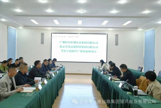 11月11日,廣州檢驗(yàn)檢測(cè)認(rèn)證集團(tuán)有限公司(以下簡(jiǎn)稱“廣檢集團(tuán)”)與北京金谷遠(yuǎn)見(jiàn)科技集團(tuán)有限公司(以下簡(jiǎn)稱“北京金谷遠(yuǎn)見(jiàn)”)考察團(tuán)到寧南縣,深入調(diào)研當(dāng)?shù)匦Q桑全產(chǎn)業(yè)鏈發(fā)展情況,并就深化戰(zhàn)略合作、推動(dòng)產(chǎn)業(yè)升級(jí)展開交流座談會(huì)。南絲路集團(tuán)、金桑莊園、銀鴻、誼興絲業(yè)領(lǐng)導(dǎo)及相關(guān)部門負(fù)責(zé)人共計(jì)18余人參加會(huì)議。