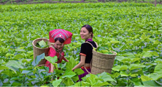 忻城縣一個(gè)桑園里,村民在采摘桑葉