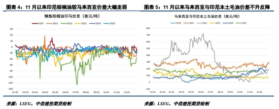 11月以來,印尼精煉棕櫚油較馬來西亞FOB價(jià)差持續(xù)走弱,印尼出口報(bào)價(jià)比馬來西亞最多便宜超過30美元/噸,導(dǎo)致一些連鎖反應(yīng)出現(xiàn)。一方面,印棕價(jià)格優(yōu)勢令其裝運(yùn)增長明顯,大幅擠占馬棕出口,導(dǎo)致馬棕11月階段性出口呈現(xiàn)明顯轉(zhuǎn)弱;另一方面,印尼報(bào)價(jià)偏弱也引發(fā)市場對其產(chǎn)量及庫存的擔(dān)憂,因印尼供需數(shù)據(jù)滯后且可信度存疑,市場只能更關(guān)注其價(jià)格。