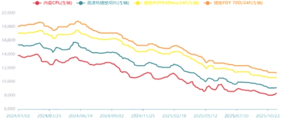 表1 2025年以來(lái)化纖主要產(chǎn)品及原料價(jià)格變化資料