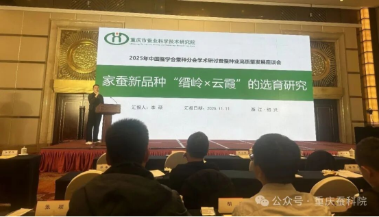 在學(xué)術(shù)研討會上,蠶科院家蠶種質(zhì)創(chuàng)制中心負責(zé)人李碩作了《家蠶新品種“縉嶺×云霞”的選育研究》專題報告,系統(tǒng)介紹了新品種“縉嶺×云霞”選育的攻關(guān)歷程、成果及品種性狀,充分展示了我院在家蠶育種領(lǐng)域的扎實積累與創(chuàng)新實力,贏得了與會專家的高度關(guān)注與較高評價。