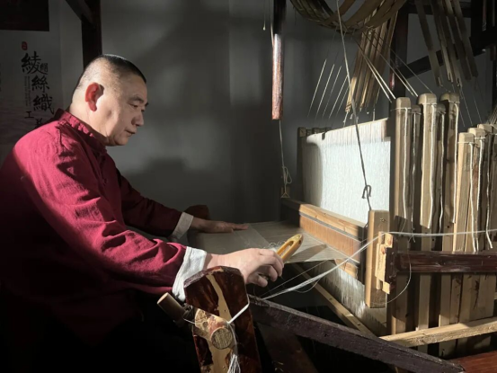 在體驗(yàn)館,游人還可以親自體驗(yàn)古法綾絹生產(chǎn)的不同工序??椩?、裝裱、繪扇……在非遺傳承人的指導(dǎo)下,與這項(xiàng)千年技藝來(lái)一次近距離接觸。