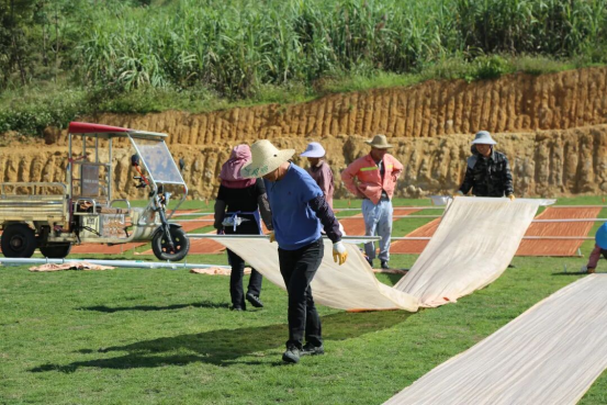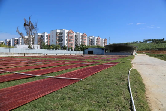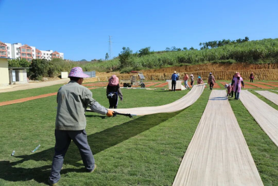 “現(xiàn)在我們曬制的香云紗,都是從忻城絲綢廠采購生絲運(yùn)去浙江織造,再拉回忻城進(jìn)行染色和晾曬的,最終制成香云紗。項(xiàng)目落實(shí)后,就不用來回搬運(yùn)了,節(jié)約很多成本?!笔痉秷@運(yùn)營方杭州依耐杰紡織品有限公司負(fù)責(zé)人寧東成透露,目前第一期用地20多畝,聘請周邊40多名工人。下個月將啟動第二期建設(shè),位于南側(cè)面積約50畝,整體規(guī)模將達(dá)70多畝。