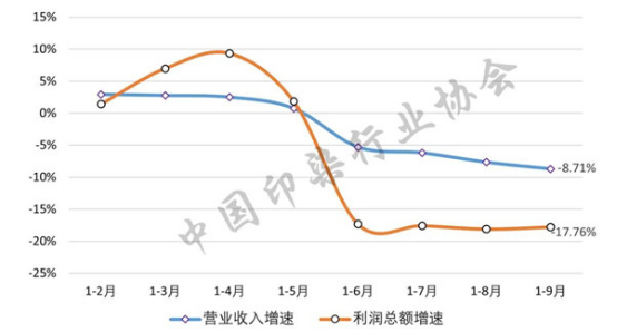 圖3 2025年前三季度我國印染行業(yè)規(guī)模以上企業(yè)營業(yè)收入和利潤總額增速情況