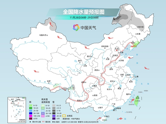 具體來看,今天新疆北疆北部、內(nèi)蒙古東部、黑龍江中部、西藏東南部等地部分地區(qū)有小雪或雨夾雪,其中,內(nèi)蒙古東北部局地有中到大雪。遼寧東部、臺灣島等地部分地區(qū)有小雨。