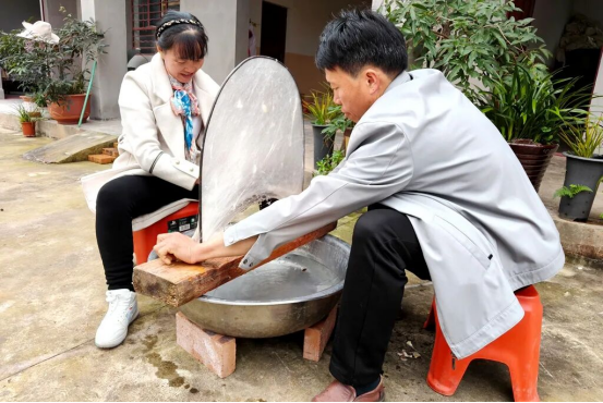 在阿都鄉(xiāng)同興村,徐學(xué)雷、李梅慧夫妻二人正在把剛剛清洗好的蠶絲進(jìn)行抽絲,進(jìn)入冬季、臨近年末,一大批客戶都定制了過冬的蠶絲被,夫妻二人加班加點(diǎn)忙著趕制。