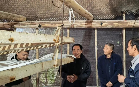 在養(yǎng)蠶戶柏昌林的蠶房內(nèi),專家團(tuán)隊(duì)仔細(xì)查看蠶匾擺放、消毒設(shè)施及溫濕度控制等環(huán)節(jié),就日常養(yǎng)殖技術(shù)要點(diǎn)與農(nóng)戶深入交流。蠶房外空地上,專家針對小蠶共育溫度調(diào)控、桑葉采摘時(shí)機(jī)等共性問題現(xiàn)場答疑,建議農(nóng)戶采摘時(shí)避開午間及高溫時(shí)段,實(shí)行早晚采收,令養(yǎng)殖戶受益匪淺。