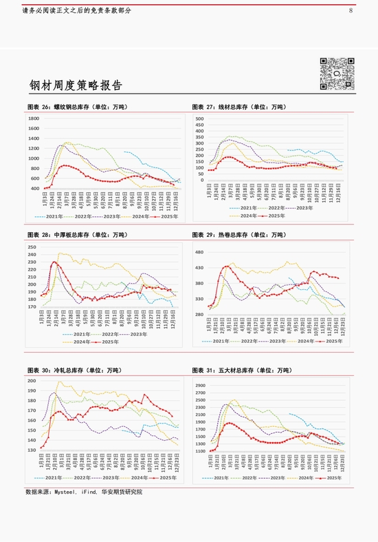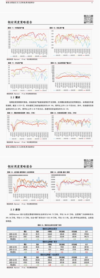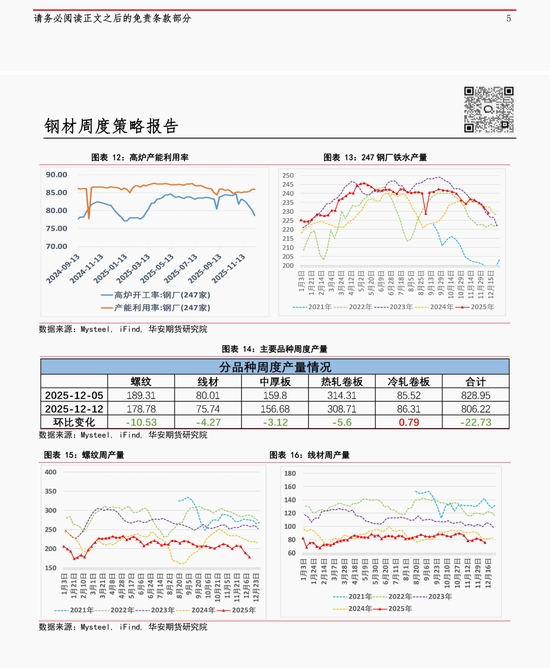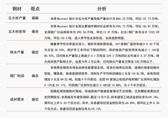 本周五大材庫存繼續(xù)環(huán)降 2.45%至 1332.09 萬噸,創(chuàng)今年春節(jié)以來最低,產(chǎn)量環(huán)比減少 2.74%至 806.22 萬噸,表觀需求續(xù)降至 839.72 萬噸為近年來同期最低位,環(huán)比降幅達(dá) 2.83%。具體來看,螺紋鋼(3487, -54.00, -1.52%)周產(chǎn)量環(huán)降 5.56%,庫存降幅達(dá) 4.81%,表需降幅擴(kuò)大至 6.4%;線材(3623, -55.00, -1.50%)表需降幅收窄至 3.94%;熱卷(3668, -61.00, -1.64%)表需環(huán)比降幅同樣收窄至 0.92%,其鋼廠庫存環(huán)增 5.14%;中厚板表需環(huán)降逾 4%;僅冷軋表需環(huán)增 2.54%,其產(chǎn)量亦增加 0.92%。