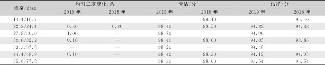 Tab.9 Average results of auxiliary inspection items of raw silk in 2019