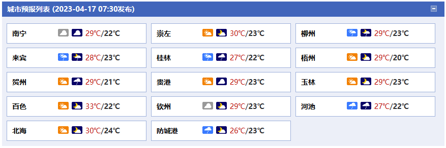 廣西氣象臺(tái)17日05時(shí)發(fā)布預(yù)報(bào):