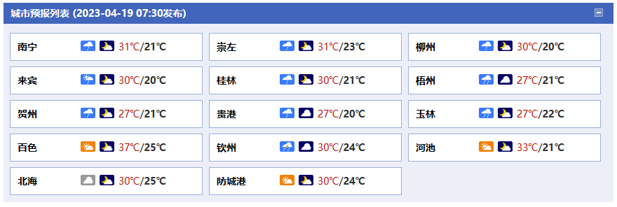 廣西氣象臺(tái)19日05時(shí)發(fā)布預(yù)報(bào):