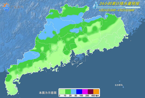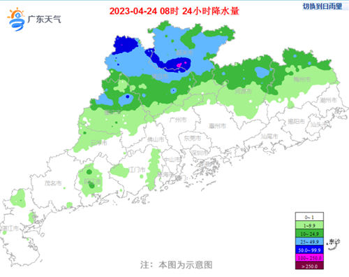 具體預(yù)報(bào):24日,粵西、珠江三角洲中西部、清遠(yuǎn)和韶關(guān)的南部市縣有中到大雨,局部暴雨,其余市縣多云轉(zhuǎn)(雷)陣雨。雷雨時(shí)局地伴有8級(jí)左右短時(shí)大風(fēng)。