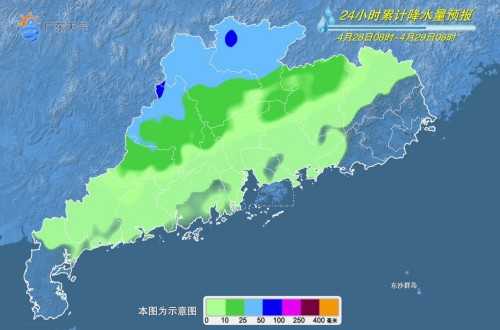 28日,清遠、韶關(雷)陣雨轉大雨局部暴雨,其余市縣多云到陰天,有分散(雷)陣雨。早晨最低氣溫:粵北市縣17℃~20℃,其余市縣21℃~25℃。