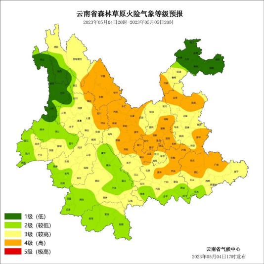 預(yù)計,麗江中東部、大理東部和東北部、楚雄大部、昆明中部和南部、玉溪北部和中部、曲靖北部和東南部、昭通西南部、紅河北部、文山北部4級,迪慶東部和北部、麗江西部、德宏東部、大理西部和中部、保山南部、臨滄北部和中部、普洱中部和東南部、楚雄西南部、昆明北部、玉溪東部和南部、昭通中部、曲靖中部、紅河中部、文山中部3級,其它地區(qū)1~2級。